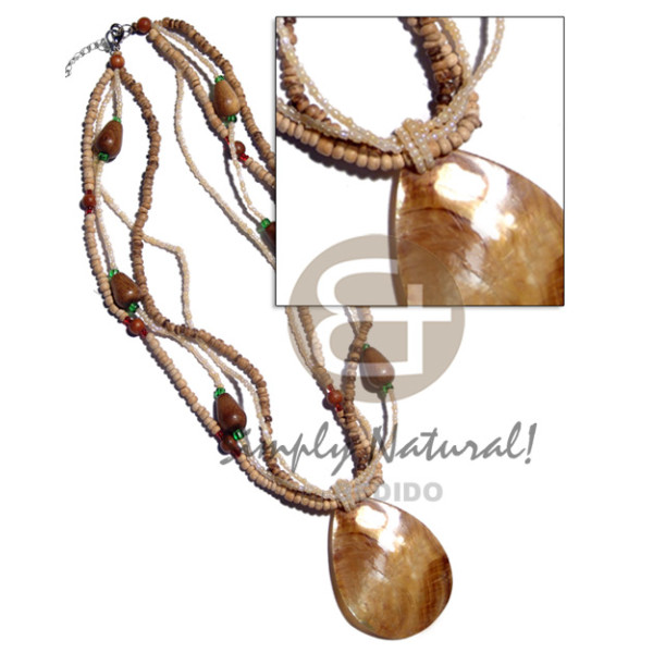 4 rows 2-3mm coco Pokalet, glass beads wood robles wood beads accent and 55mm teardrop MOP skin pe..