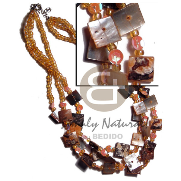 3 rows orange hammershell 12mm chips skin and glass beads combination..