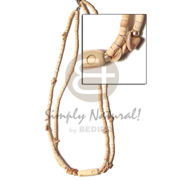 2 rows 2-3 mm heishe nat. chocolate orchids combination and center wood tube burning accent..