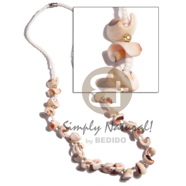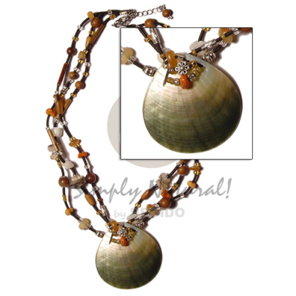 2-3 coco heishe brown land snail pendant & 2-3mm melo shell accent and sig-ed alt..
