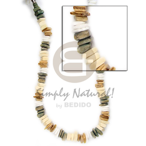 4-5mm coco. nat brown multicolored buri nuggets & nat. wood wheels..