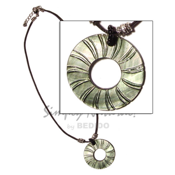 48mmx18mm triangular laminated cracking blacklip shell pendant backing on leather thong..