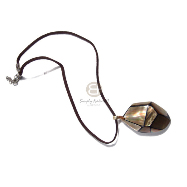 50mmx35mm laminated and embossed brownlip resin backing in brown leather thong/ 18in..