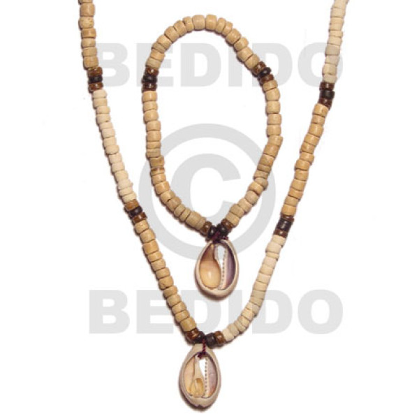 4-5mm coco Pokalet natural 8mm coco Pokalet bleach & greywood beads accent..