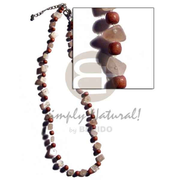 4-5mm coco Pokalet nat. tiger palmwood cubes and buri seed beads combination / 16in/ barrel lock..