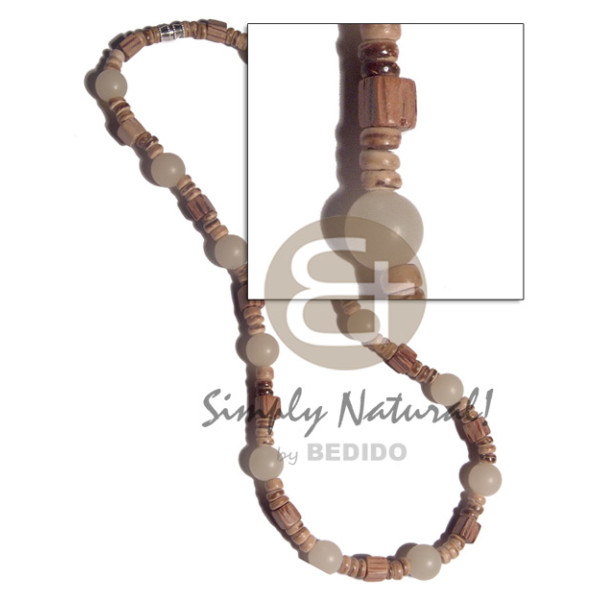 4-5mm coco Pokalet nat. tiger palmwood cubes and buri seed beads combination / 16in/ barrel lock..