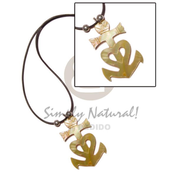 2-3mm coco heishe bleach blue/yellow sq cut hammershell & oval MOP pendant..