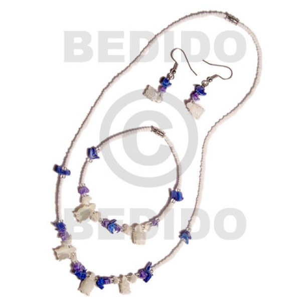 buri,colored white rose & limestone combination cut beads & acrylic crystals / subdued blue tones..