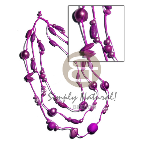 3 rows 16" 17" 18" wax cord asstd. wood beads, pearl, wrapped wood bead, pearlized kukui nuts in la..