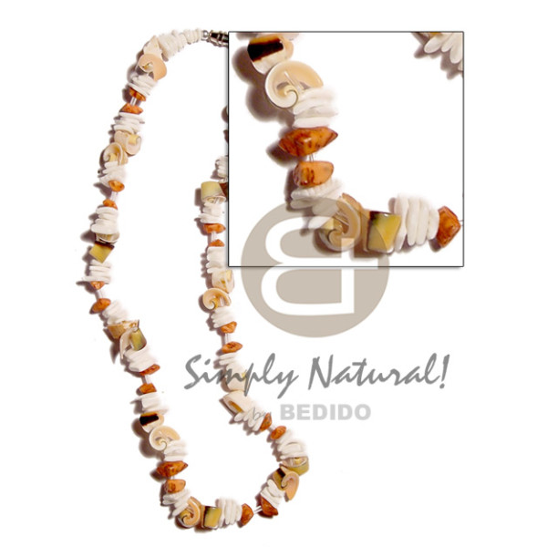 braided flat abaca choker 5 pcs flower bubble shells and 4-5mm coco Pokalet nat. brown accent / 16..