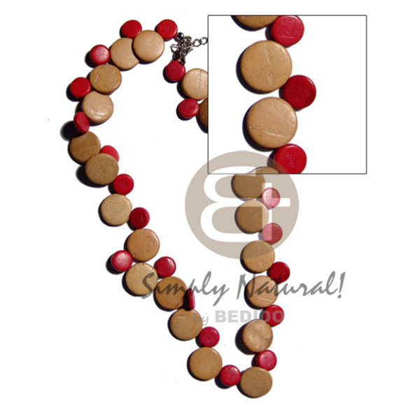 single row red/nat. white coco sidedrill 10mm & 15mm / alternate..