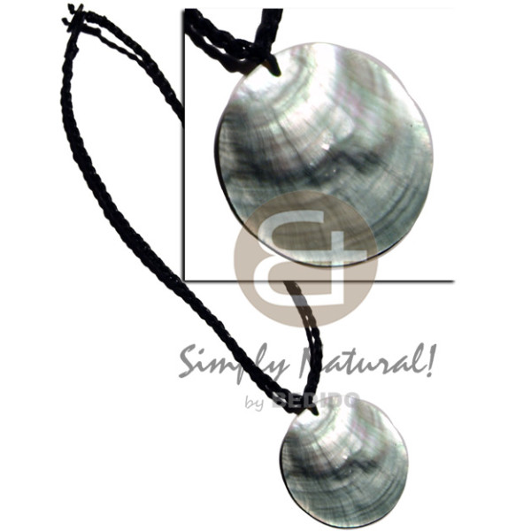 35mmx40mm blacktab shell fang pendant in black macrame white rose shell accent..