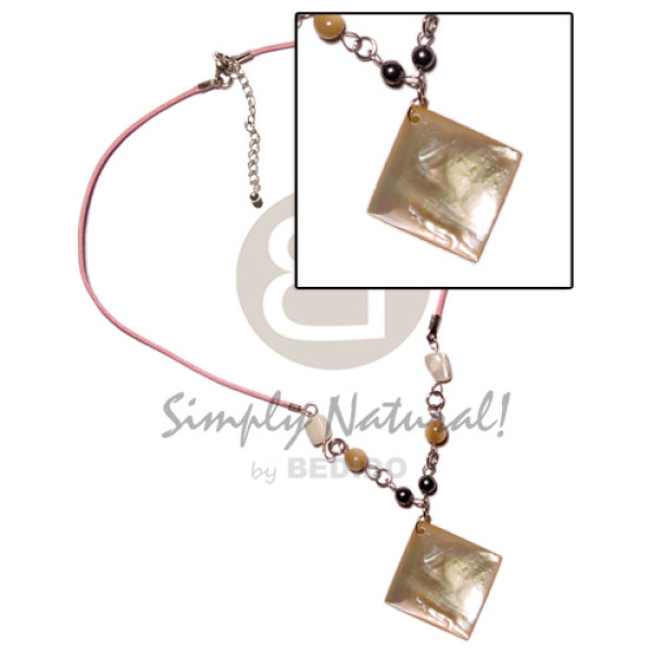 40mm diamond hammershell pendant troca beads in wax cord..