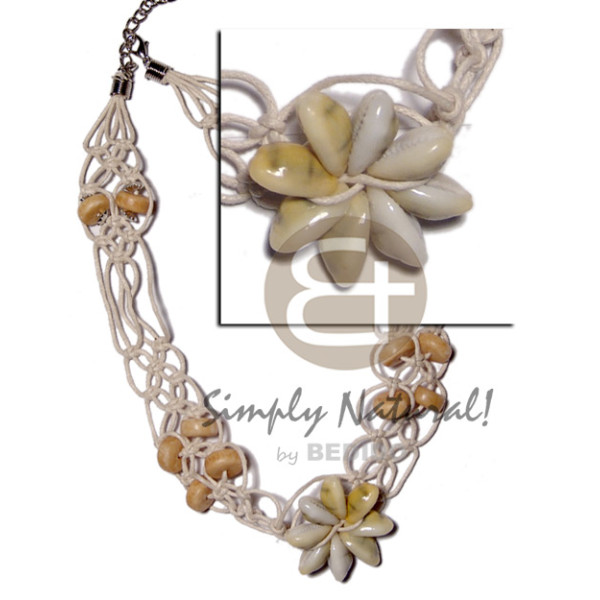 50mmx15mm cowrie shell fang pendant in 4-5mm coco Pokalet tiger.white clam and wood beads combinatio..