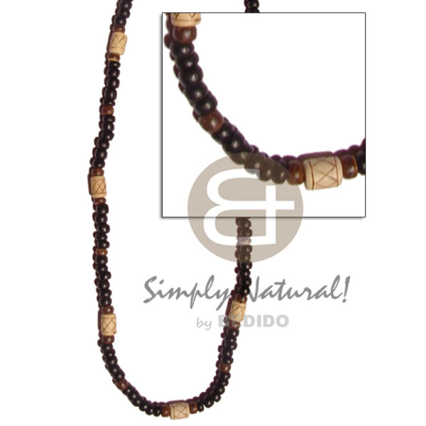 4-5mm coco heishe bleach bamboo,whiteclam combination and wood ball bead burning accent..