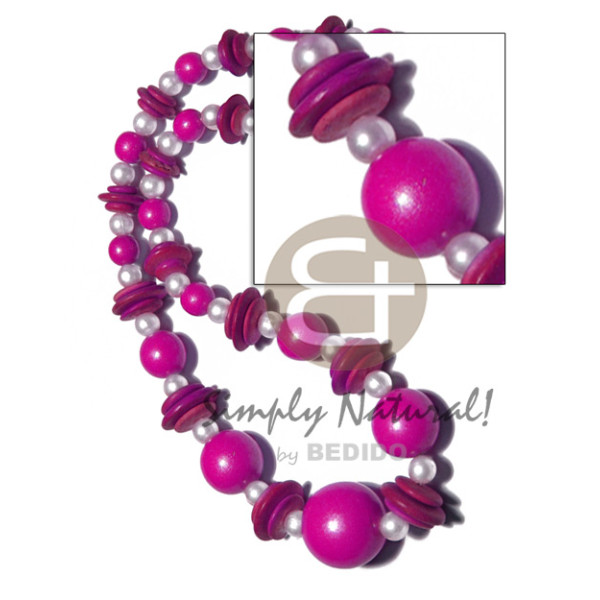 graduated wood beads 25mm/20mm/15mm/10mm in pearl beads accent / fuschia tones / 21 in...