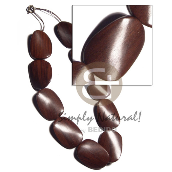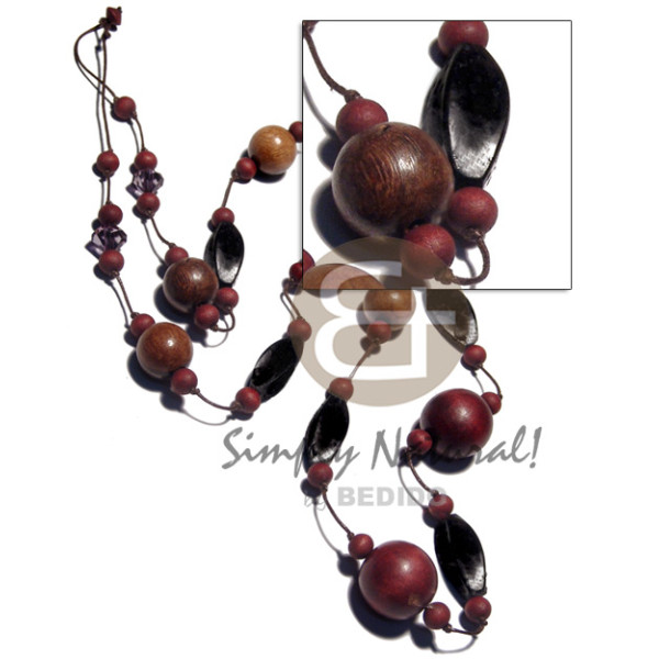 25mm & 10 mm round nat. wood in brown 20mm robles wood and twisted camagong tiger wood beads in wax..