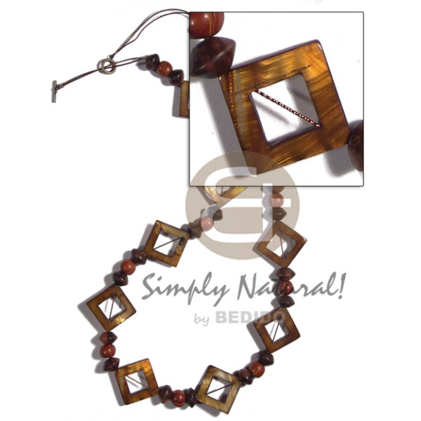 6mm /8mm bayong wood beads crazy cut and troca beads combination / 16in / barrel lock..