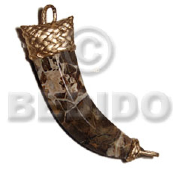 marbled stone fang pendant 100mmx30mm gold nito holder..