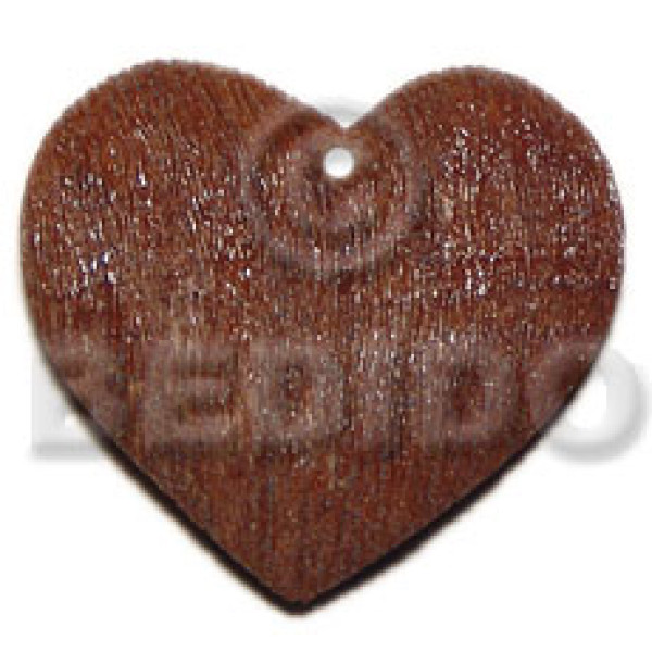 40mmx45mmmm textured brown heart nat. wood pendant..