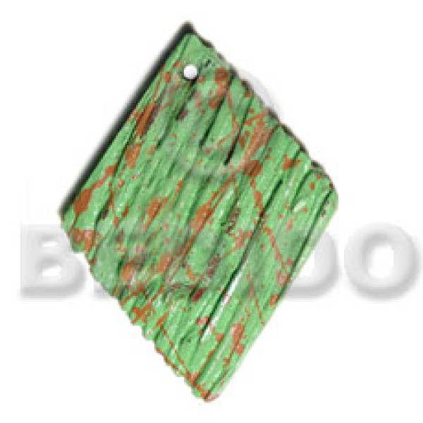 textured marbled light green diamond 60mmx45mm nat. wood pendant..
