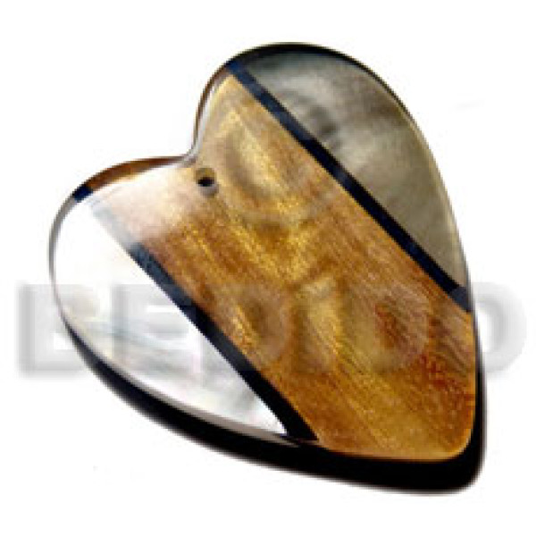 60mm textured heart bayong wood cross accent in crushed troca & gold nito pendant trimmings/holder..